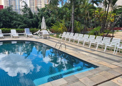 - Sala de ginástica, Quadra esportiva, Piscina, Mercadinho interno, Lavanderia inclusa no condomínio (até 40 peças lavadas e passada por semana), Serviço de limpeza opcional - Tudo pensado para facilitar sua rotina e proporcionar mais conforto e bem-estar.
