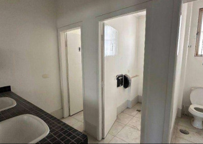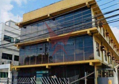 Fachada totalmente espelhada, 3 lajes com vão livre e uma edicula nos fundos que é uma cozinha, com banheiros.